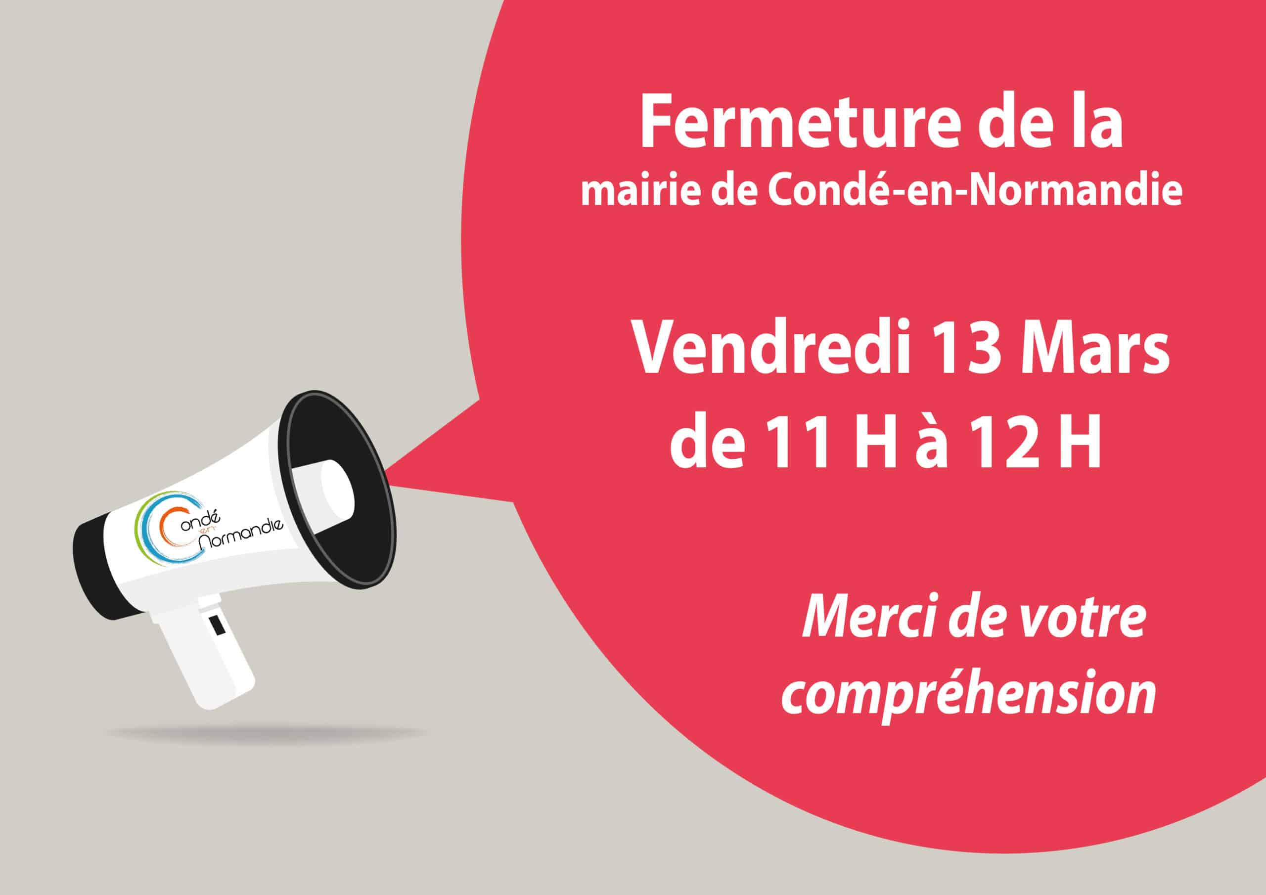 Fermeture mairie de Condé-en-Normandie vendredi 13 mars